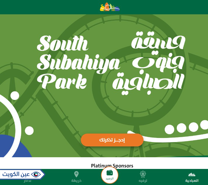 • رابط حجز تذاكر حديقة جنوب الصباحية عبر الموقع الإلكتروني للحديقة؛ kuwaitplatform.com.