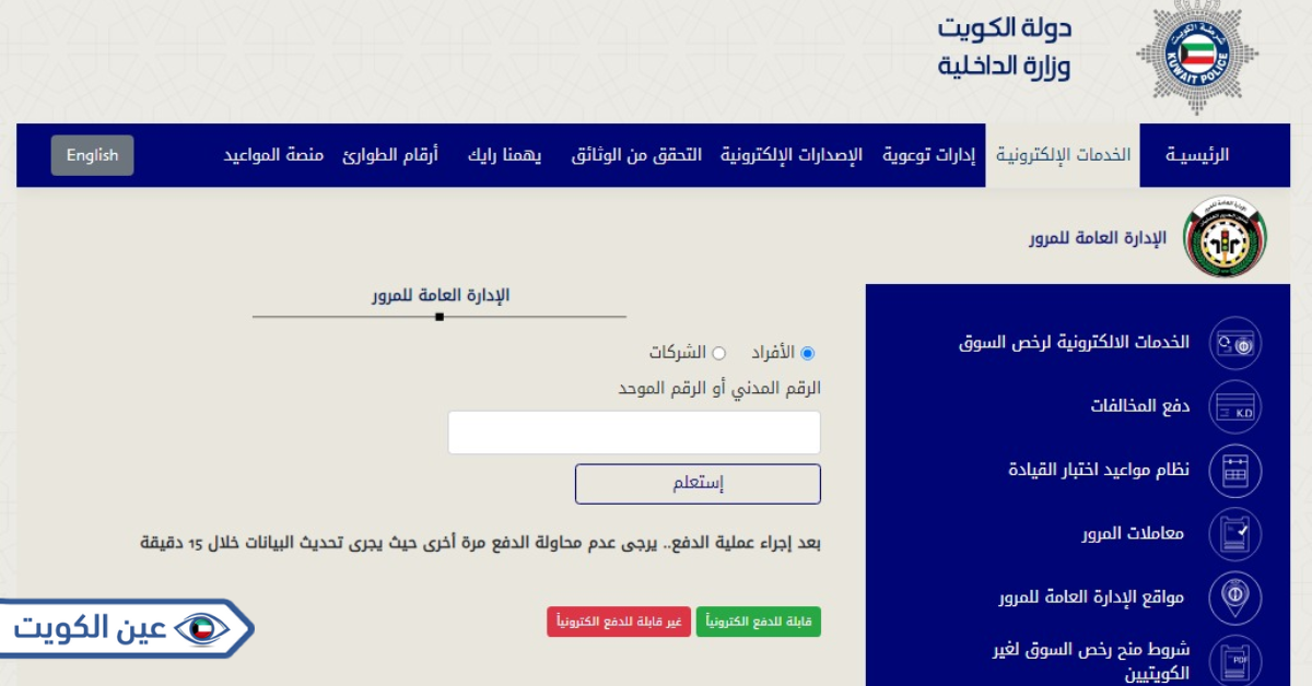 فيما يلي خطوات الاستعلام عن سحب رخصة القيادة في الكويت: [1]