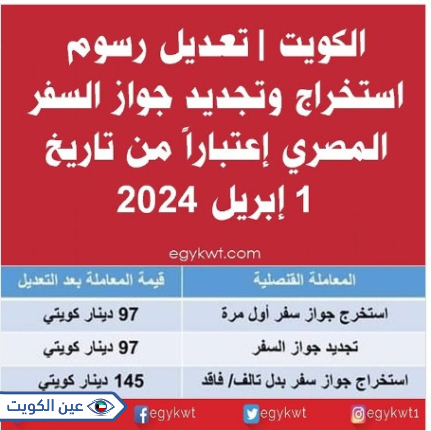 إن قيمة رسوم تجديد جواز السفر المصري في الكويت تبلغ 97 دينار كويتي، وذلك وفق ما أعلنت عنه قنصلية جمهورية مصر العربية في دولة الكويت، ويمكن سداد رسوم التجديد هذه نقداً بعد إتمام إجراءات طلب التجديد أو عبر بطاقة “كي نت”. [2]