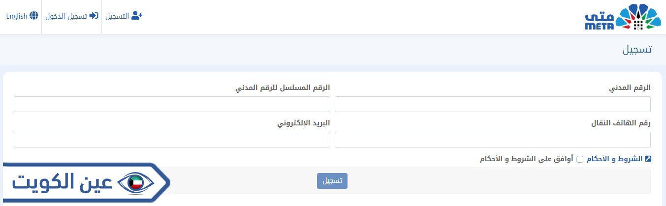 • للتسجيل مباشرة استخدم هذا الرابط: meta.e.gov.kw