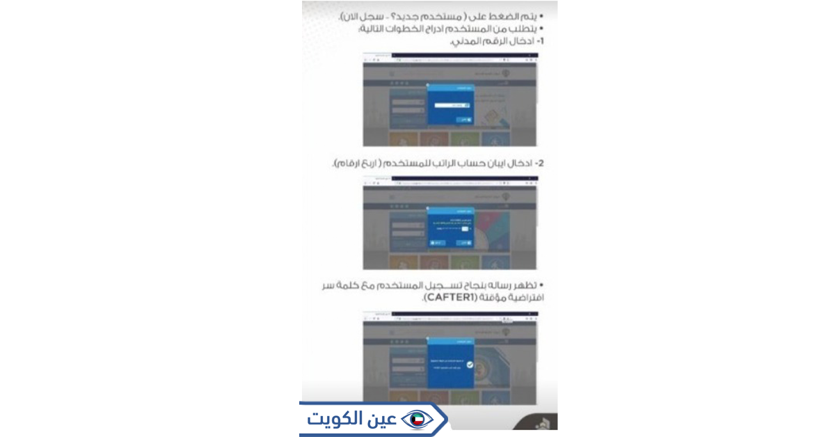 - تسجيل الدخول بالرقم المدني وكلمة المرور المؤقتة.