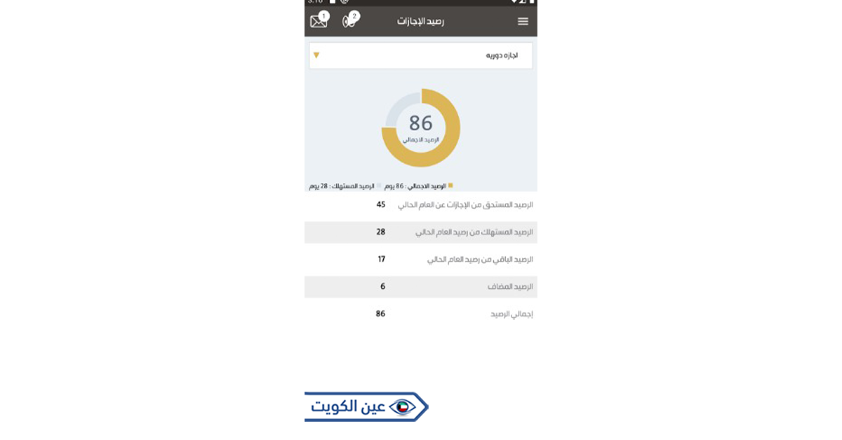 - الاطلاع على رصيد الإجازات الممنوحة والمتبقية.